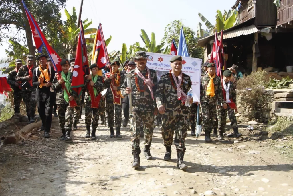 त्रिशूली (नुवाकोट), २४ पुसः नेपाल एकीकरणका क्रममा पृथ्वीनारायण शाह हिँडेको बाटो पछ्याउँदै नेपाली सेनाको ‘एकीकरण टर्च र्याली’ मङ्गलबार नुवाकोट आइपुगेको छ । धादिङको भर्याङभुरुङ हुँदै सामरीबाट नुवाकोट प्रवेश गरेको र्याली विदुर नगरपालिका–१० स्थित शुभघाटमा आएर बास बसेको हो । र्याली सामरीभञ्याङ, कागुने हुँदै शुभघाट आइपुग्दा विदुर नगरपालिकाका प्रमुख राजन श्रेष्ठसहितका जनप्रतिनिधि र स्थानीयले स्वागत गरेका थिए ।