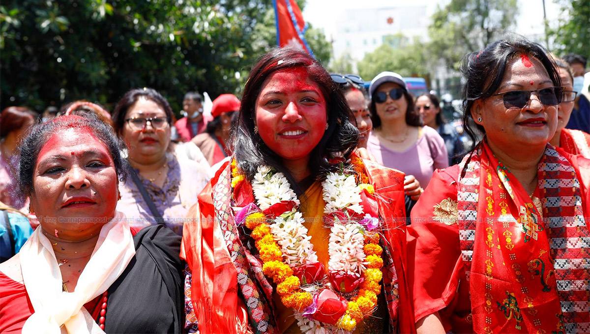 राष्ट्रियसभा गृहबाट सुरु भएको र्याली काठमाडौं महानगरको कार्यालयसम्म पुग्ने जनाएको छ।स्थानीय तह निर्वाचनमा भारी मतका साथ डंगोल महानगरको उपमेयरमा विजयी भएकी छन्। डंगोलले निकटतम प्रतिद्धन्द्धी गठबन्धनका उम्मेदवार नेकपा एकीकृत समाजवादीका रामेश्वर श्रेष्ठलाई पछि पार्दै उपमेयरमा विजयी भएकी हुन्।