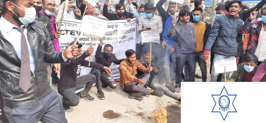 सीटीईभीटीले आगामी माघ २७ गतेदेखि परीक्षा तोकेकोमा उक्त परीक्षा हालै स्थगित गरेको छ । परीक्षा स्थगित गरेको विरोधमा विद्यार्थीले रमानन्द चोकमा टायर बालेर प्लेकार्डसहित प्रदर्शन गरेका छन् ।