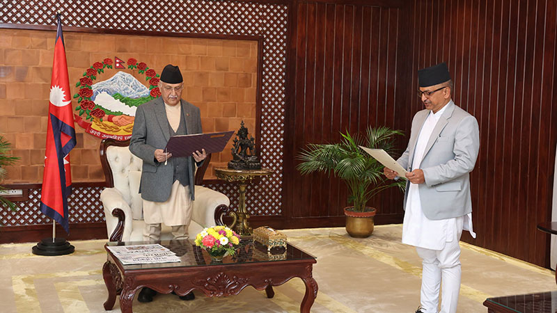 प्रधानमन्त्री निवासमा आज बिहान भएको समारोहमा प्रधानमन्त्री ओलीले प्रमुखआयुक्त आचार्यलाई पद तथा गोपनीयताको शपथ गराउनुभएको हो ।